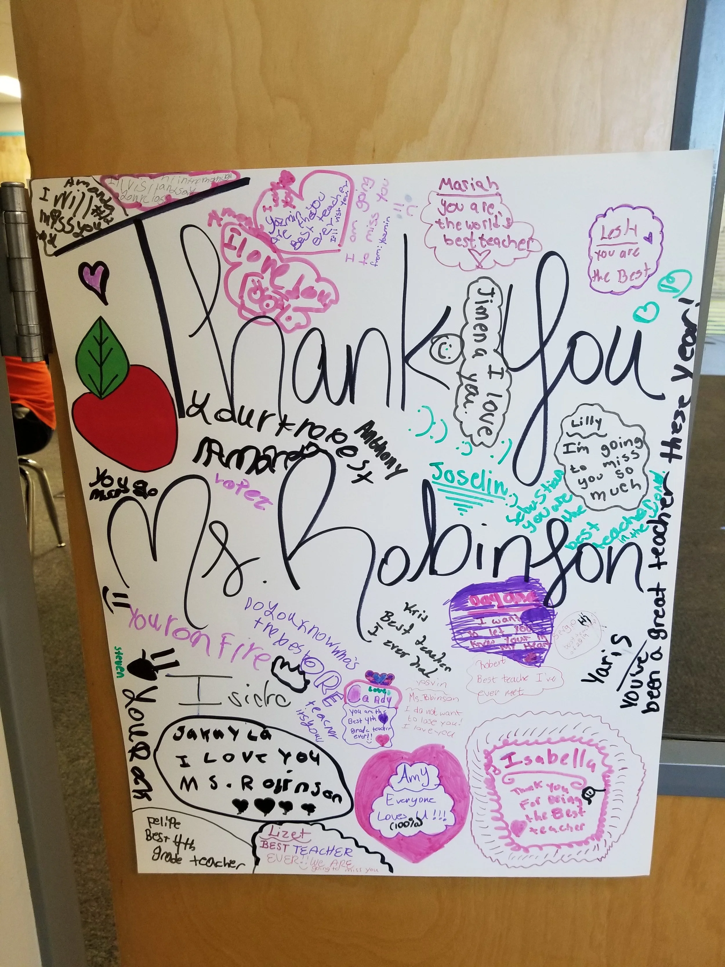 My students created a poster in the last days of school to surprise me with. Making a positive impact in their lives while teaching lifelong skills is the biggest accomplishment I can achieve.